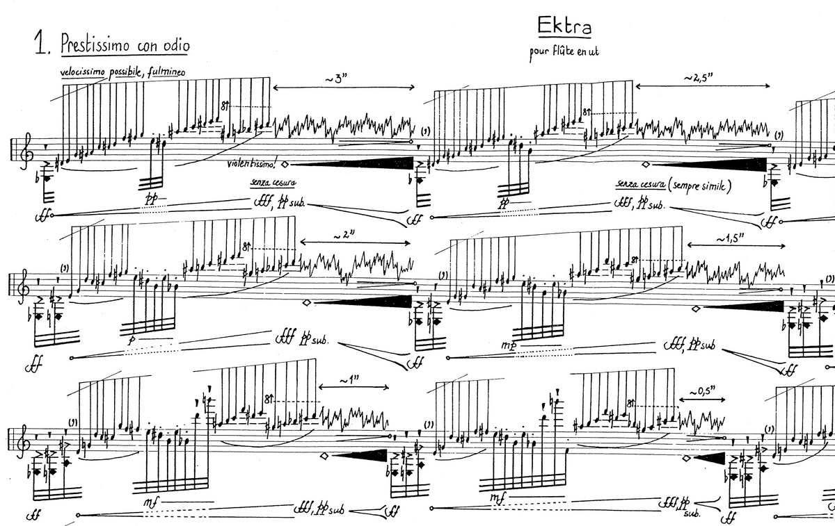 E k t r a (2001), pour flûte seule (5') → Manuscrit [ 1 ]