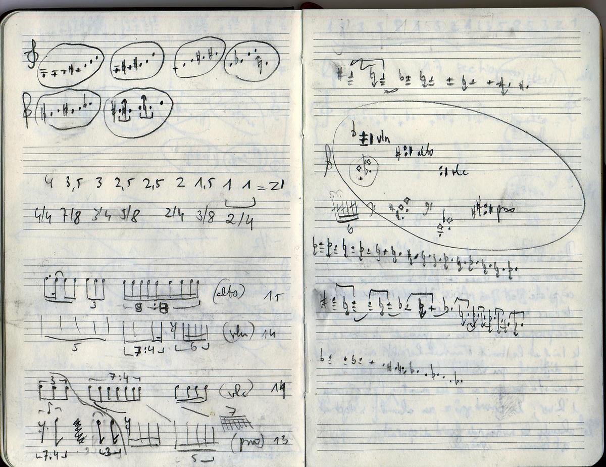 H e n d e k a (2007), pour violon, alto, violoncelle et piano (11') → Manuscrit [ 1 ] Esquisses [ 1 ]