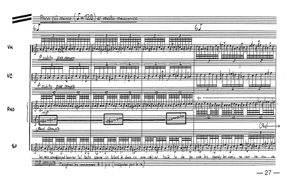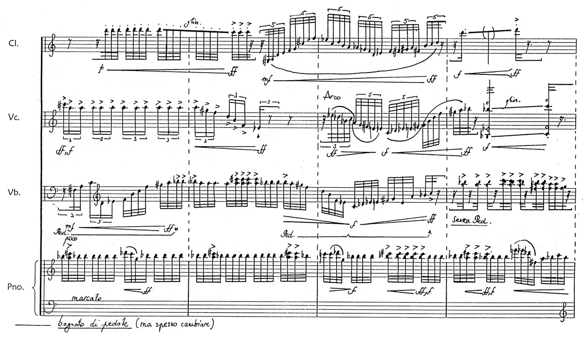 L a C h u t e D u R o u g e (2000), pour clarinette, violoncelle, vibraphone et piano (11') → Manuscrit [ 1 ]