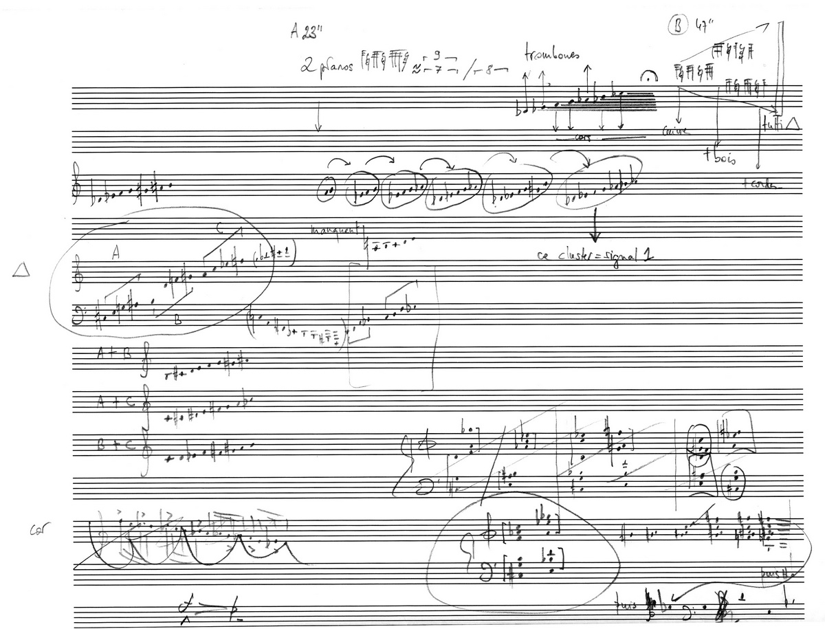 V e r t i g o (2006-2007), pour 2 pianos et orchestre (20') → Manuscrit [ 1 ] Esquisses [ 1 ]